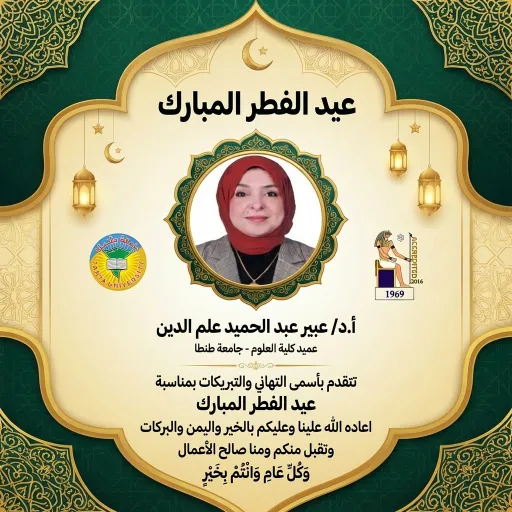 تتقدم السيدة الأستاذ الدكتور عبير عبدالحميد علم الدين عميد كلية العلوم جامعة طنطا بخالص التهنئة للسادة وكلاء الكلية ورؤساء الأقسام وأعضاء هيئة التدريس والهيئة المعاونة والعاملين والطلاب بمناسبة حلول عيد الفطر المبارك.
